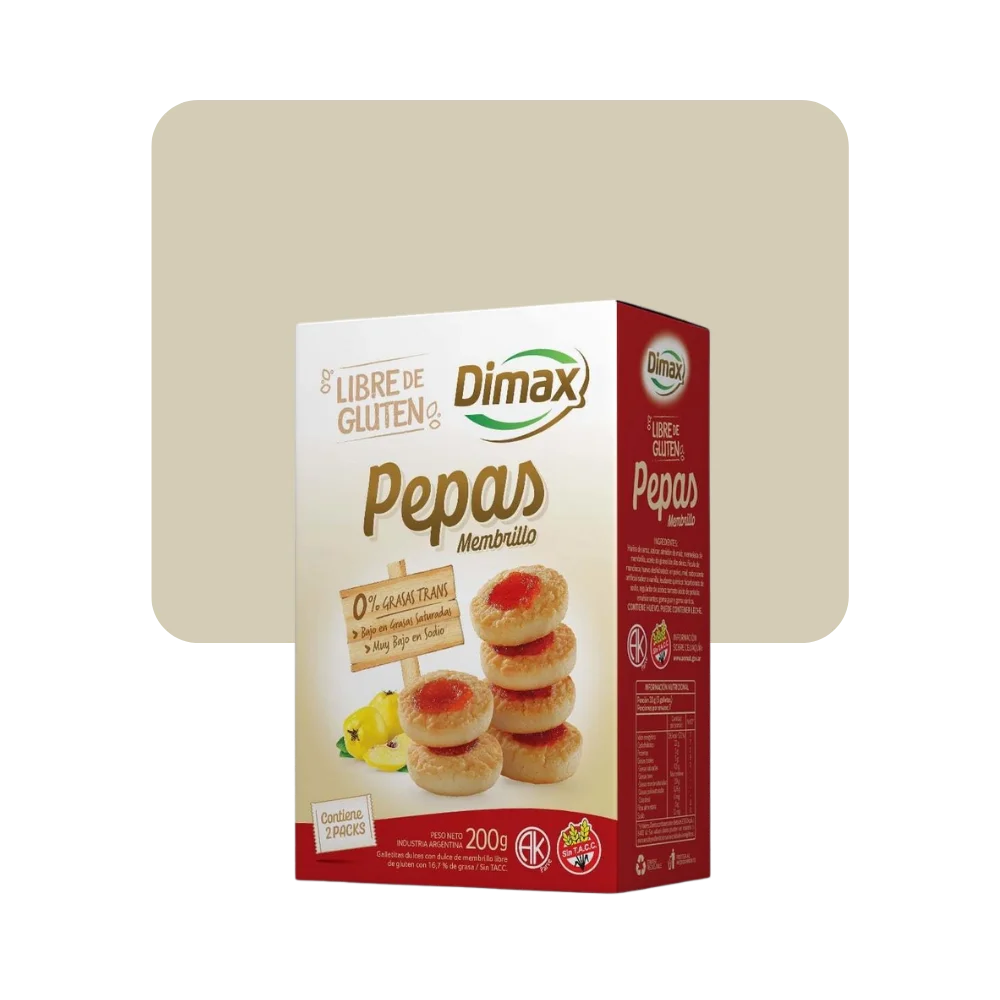Ingredientes: azúcar, harina de arroz, almidón de maíz, aceite de girasol de alto oleico, agua, fécula de mandioca, mermelada de membrillo, yema de huevo deshidrata en polvo, huevo deshidratado en polvo, miel, leudantes químicos: bicarbonato de sodio, tartrato ácido de potasio, saborizante artificial sabor a vainilla. CONTIENE HUEVO.