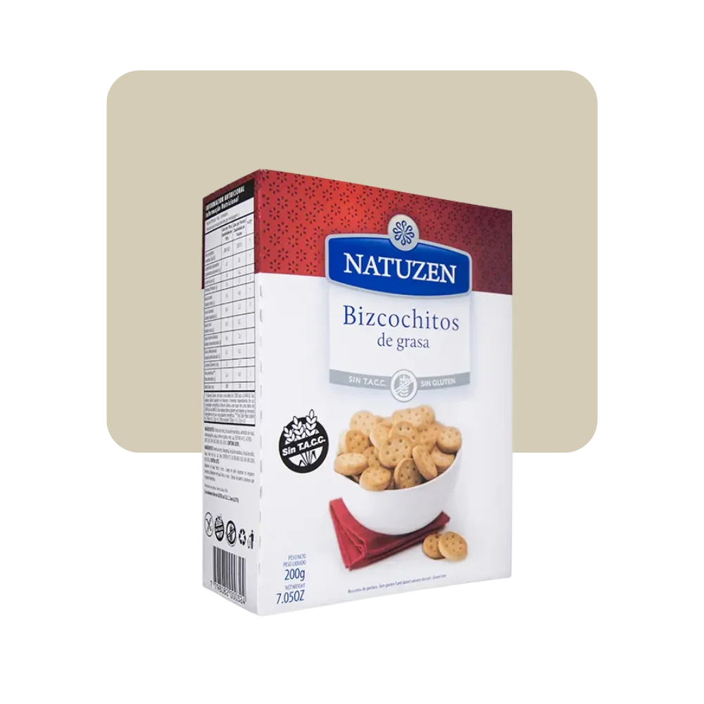Ingredientes: Harina de arroz, fécula de mandioca, almidón de maíz, oleomargarina, agua, leche en polvo, miel, sal, ESP (INS 415), AC REG (INS 336), RAI (INS 500I, INS 503II). Contiene leche y lecitina de soja.