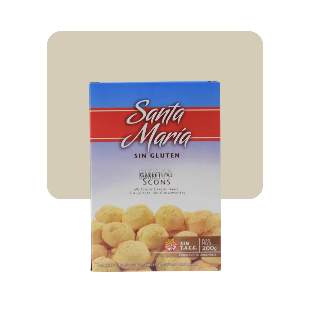 Ingredientes: Aceite vegetal, harina de arroz, almidón de maíz, azúcar, fécula de mandioca, huevo, miel, agentes leudantes (bicarbonato de sodio, bicarbonato de amonio, fosfato monocalcico), estabilizantes (goma xantica, goma guar), emulsionantes (estearoil-lactilato de sodio, lecitina de soja), colorante (tartrazina), saborizantes (esencia de vainilla, esencia de chocolate, esencia de manteca, esencia de limón). Contiene: huevo, soja.