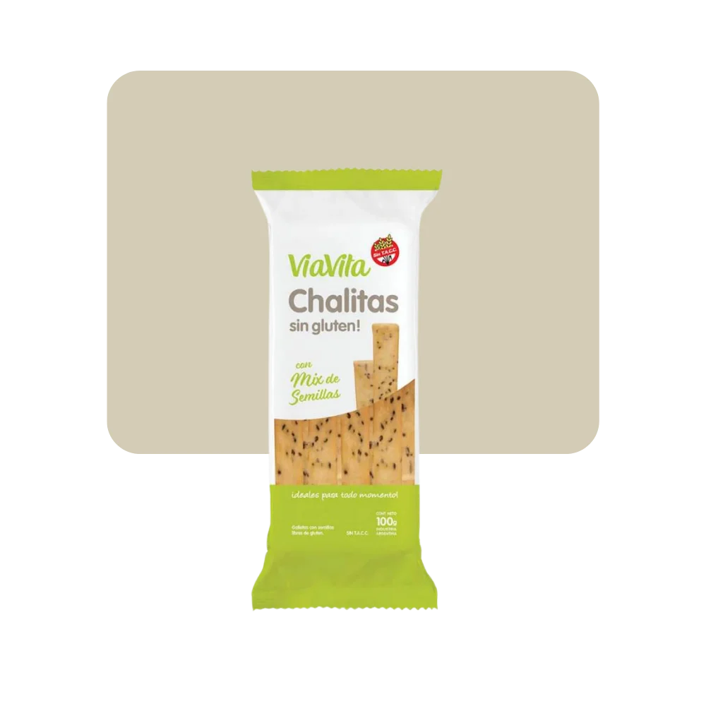 Ingredientes: Harina de Arroz, Almidón de Maíz, Fécula de Mandioca, Aceite de Girasol Alto Oleico, Mix de Semillas (sésamo, chía, girasol tostado), Huevo en polvo, Levadura, Azúcar, Sal, Espesante Goma Xántica (INS 415).