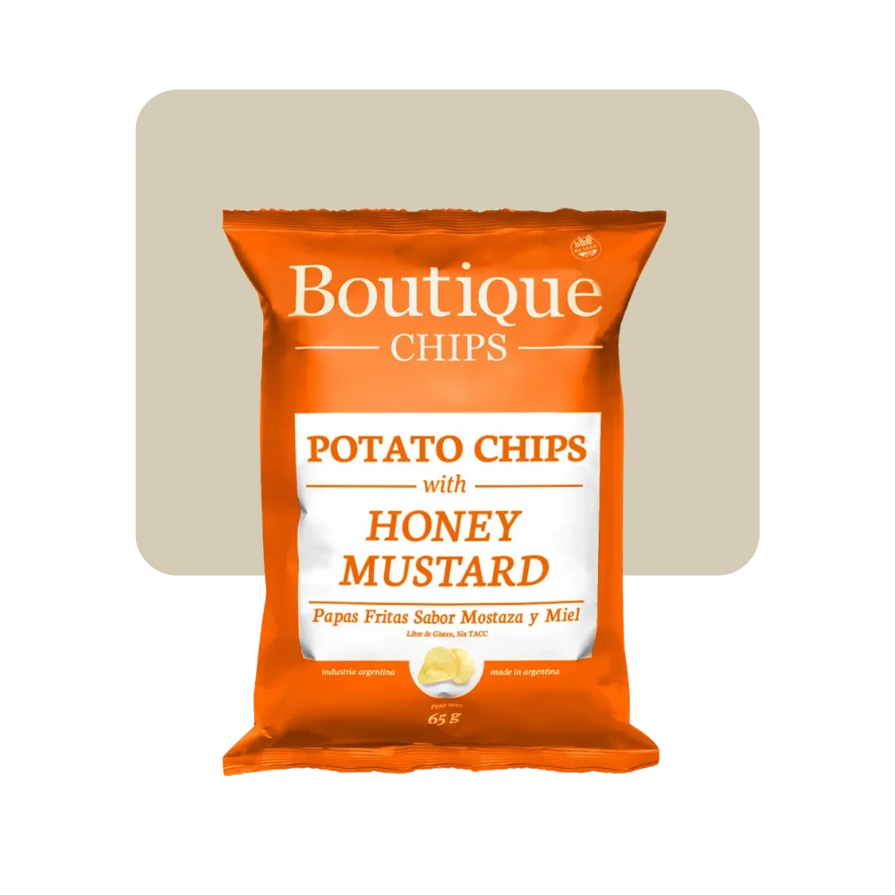 Estas papas fritas libres de gluten con sabor a mostaza y miel con sal marina son un delicioso snack crujiente y sabroso, elaborado con papas de alta calidad y sazonadas con una mezcla de mostaza, miel y sal marina.