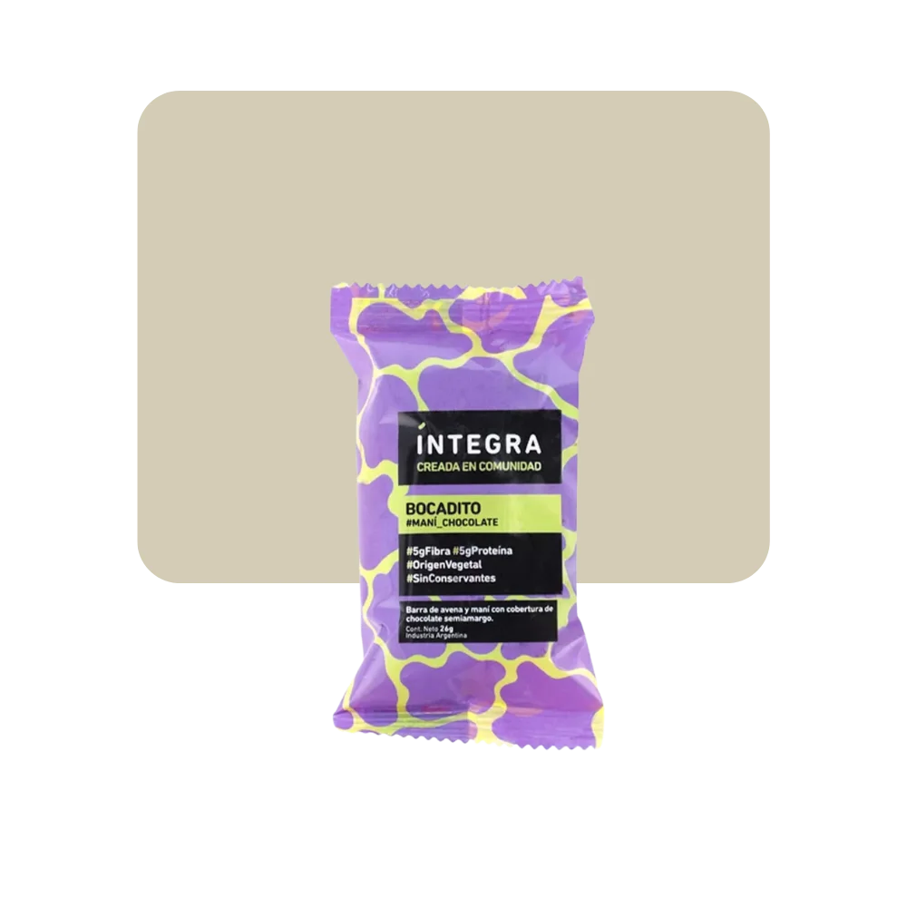 Ingredientes: avena, cobertura de chocolate semiamargo, fibra de la raíz de achicoria (inulina), maíz, proteína vegetal texturizada, almíbar de azúcar mascabo, proteína de arveja, cacao en polvo, aroma a vainilla.