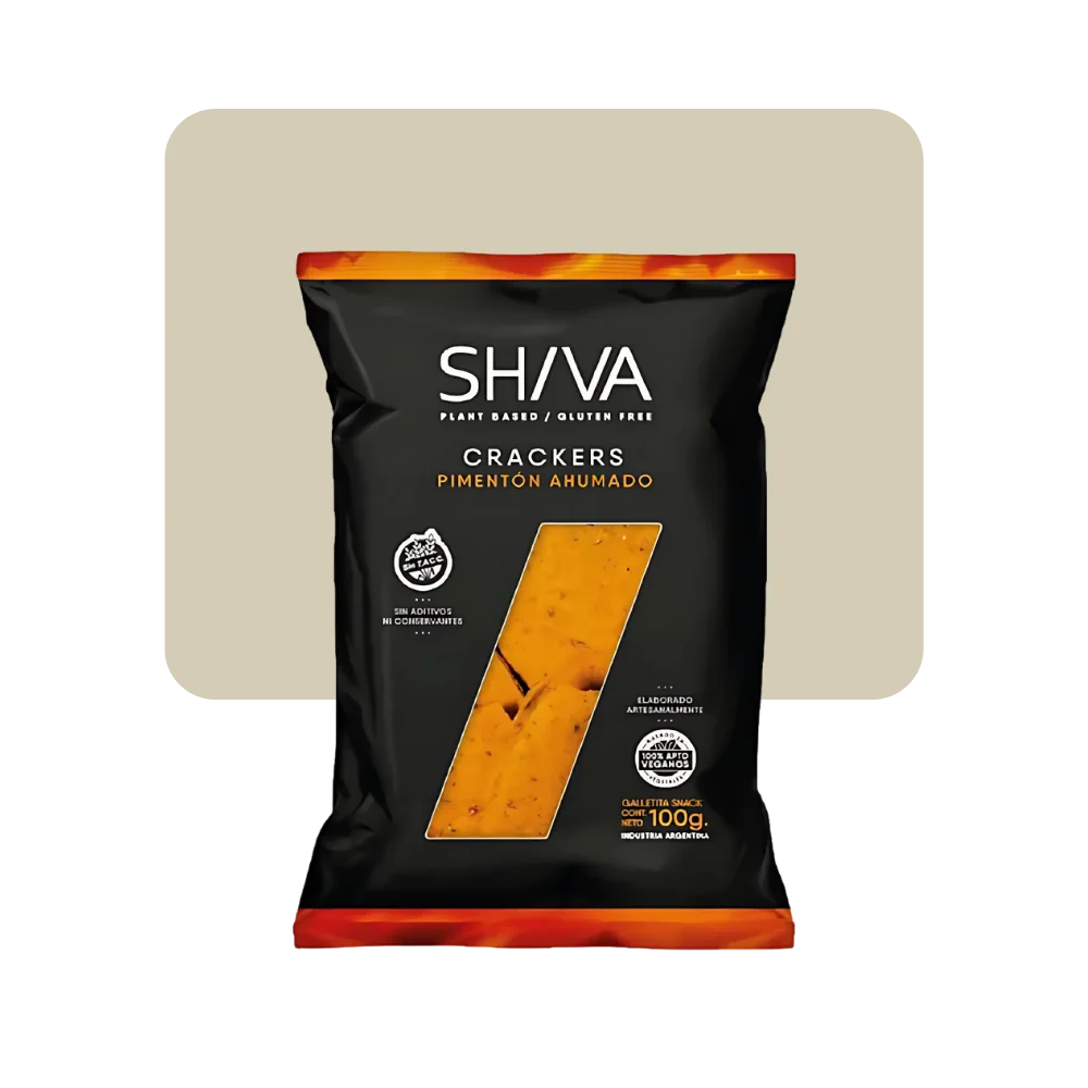 Ingredientes: Harina de arroz integral, fécula de mandioca, aceite de coco, pimentón ahumado, lino dorado, sal rosada del himalaya, ajo en polvo, chimichurri.