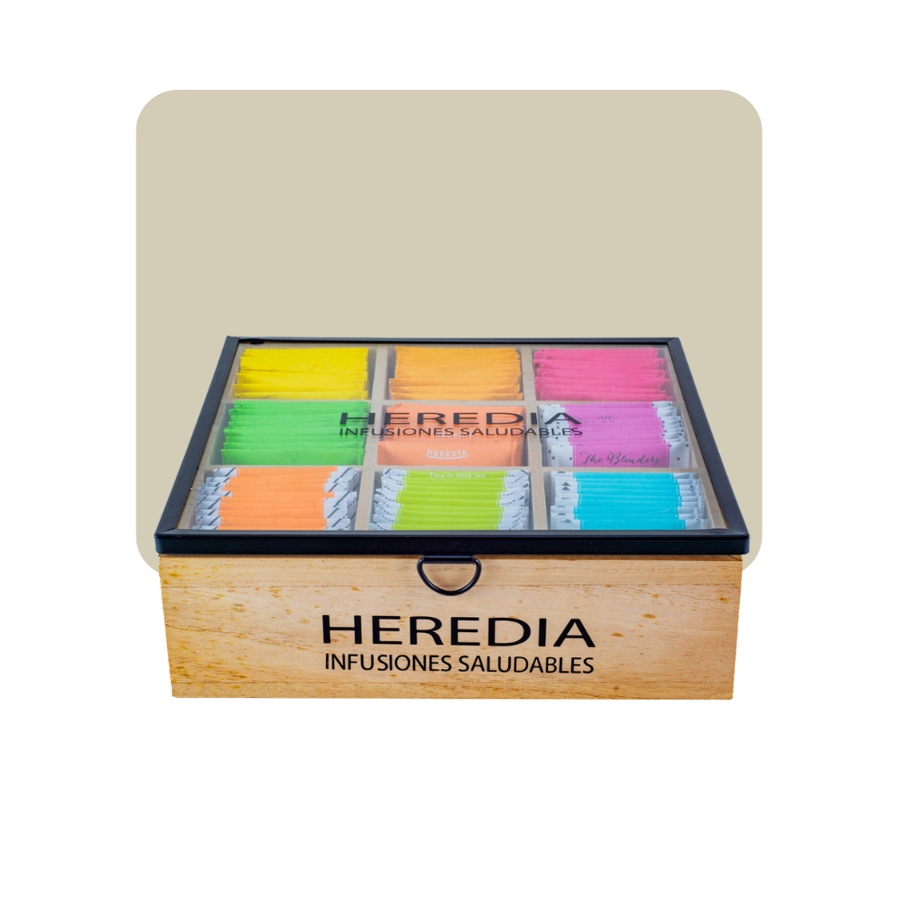 heredia caja de te madera
