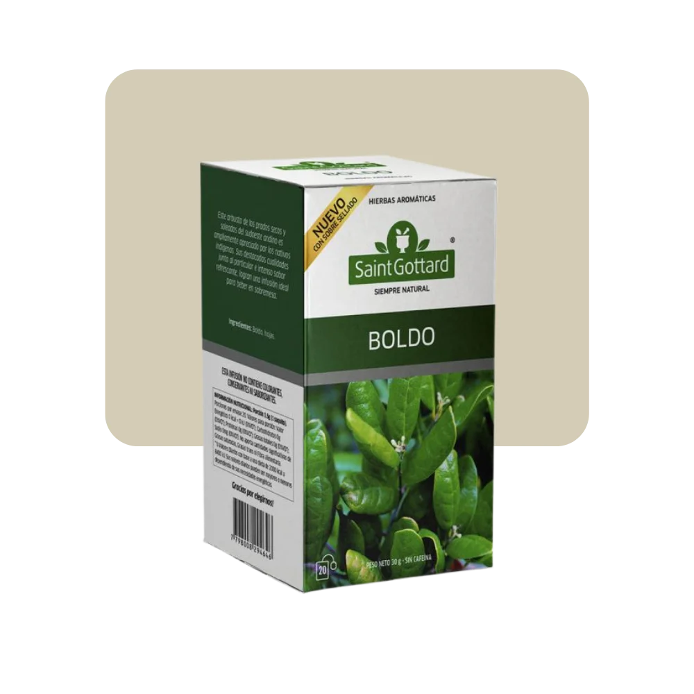 Conocido por sus propiedades digestivas y hepáticas, el té de boldo es una opción reconfortante para después de las comidas. Su aroma único y suave sabor herbal lo convierten en la elección perfecta para calmar el estómago y relajarse en cualquier momento del día.