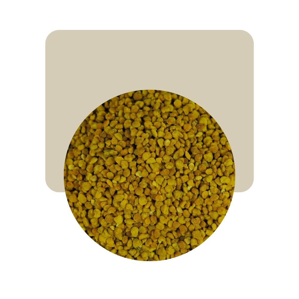 El polen granulado se recolecta de las flores y se seca cuidadosamente para preservar sus propiedades nutricionales.