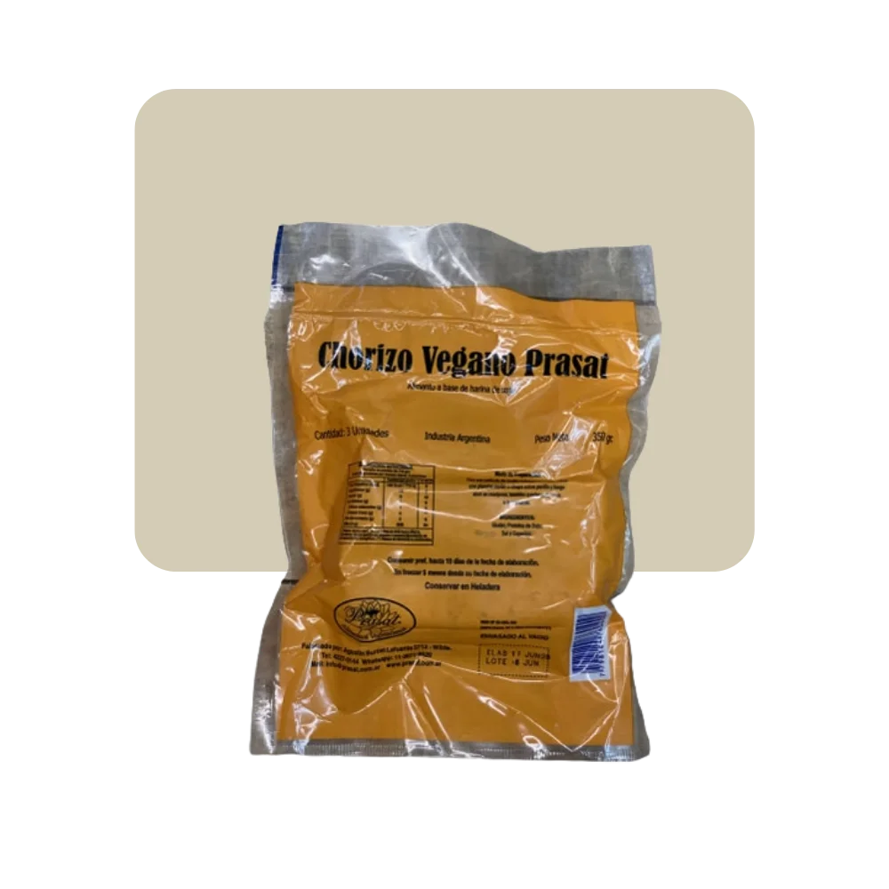 El chorizo vegano Prasat es un alimento a base de soja texturizada y especias.