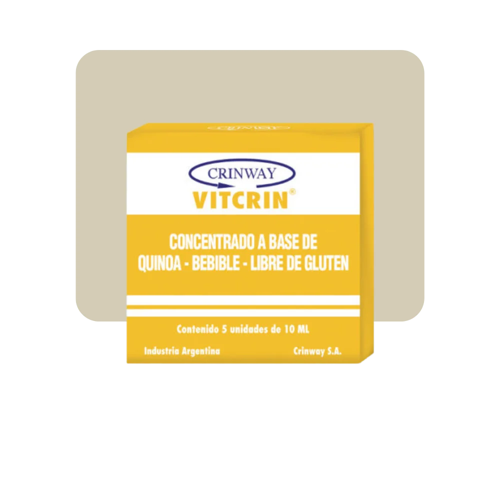 Vitcrin Quinoa de Crinway es un concentrado líquido bebible que aprovecha las propiedades nutricionales de la quinoa, un pseudocereal reconocido por su aporte de proteínas, aminoácidos esenciales y micronutrientes.