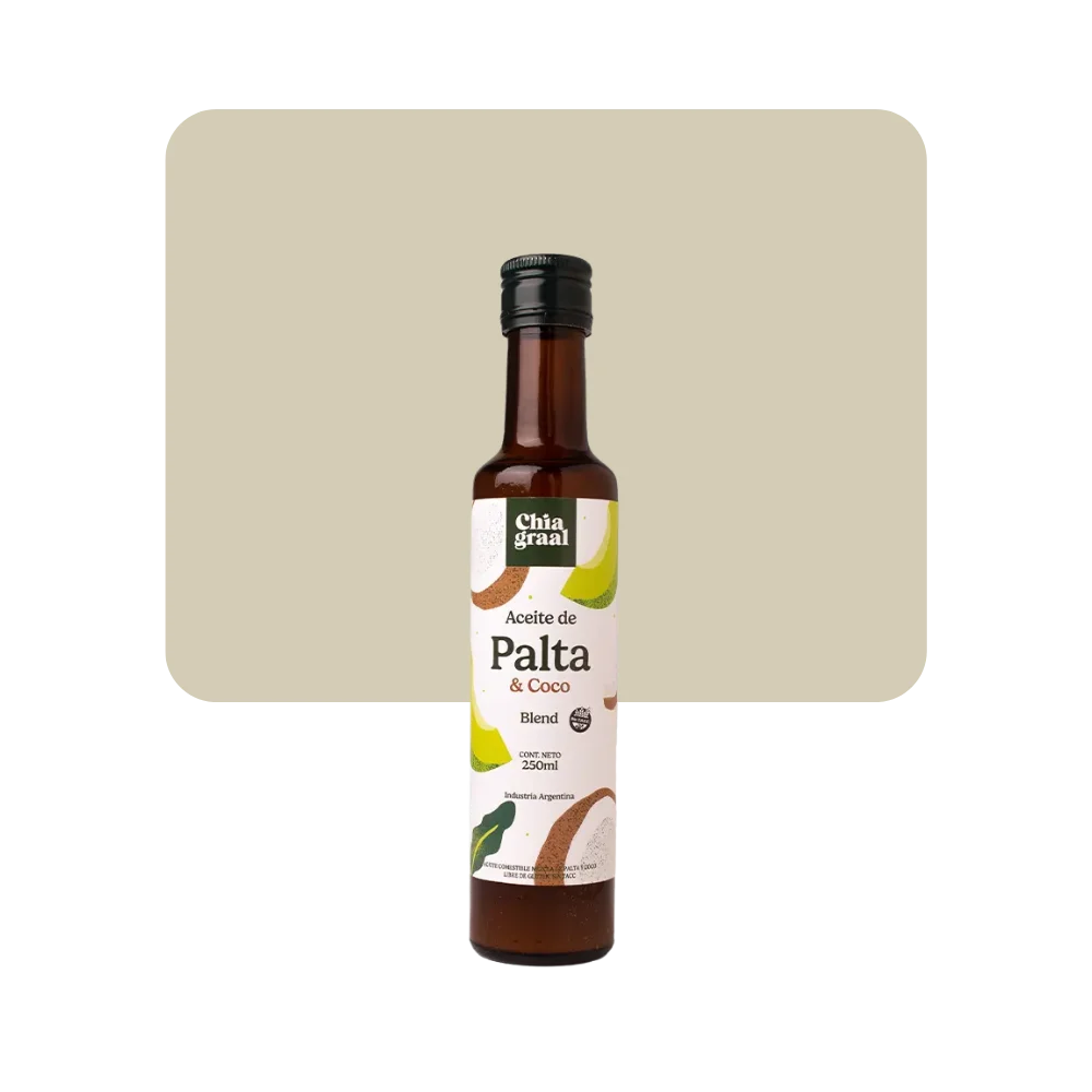 Blend de Aceite de palta 100% puro y Aceite de Coco neutro. Aceite untuoso de sabor neutro.