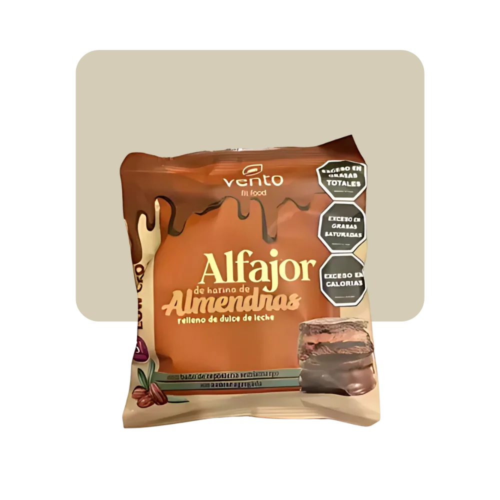 Ingredientes: Harina de almendras, manteca, dulce de leche (leche descremada, azúcar, glucosa, sólidos lacteos, lactato de calcio (texturizante), aromatizante artificial vainilla, conservante (sorbato de potesio), estabilizante (carragenina)), Baño de repostería semiamargo sin azúcar agregaddo, agua, harina de coco, cacao amargo, huevo en polvo, polvo de hornear (almidón de maíz, leudante quimico: pirofosfato sódico ácido y bicarbonato de sodio). Contiene huevo, derivados de almendras y leche. Puede contener derivados de avena, maní y soja.