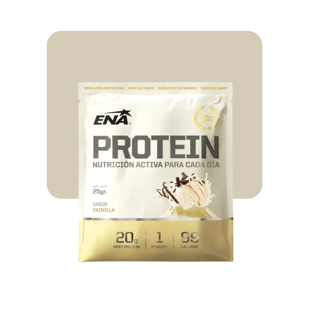 La mezcla de proteína de suero de leche concentrada y aislada en Protein de ENA ofrece una recuperación muscular rápida y efectiva.