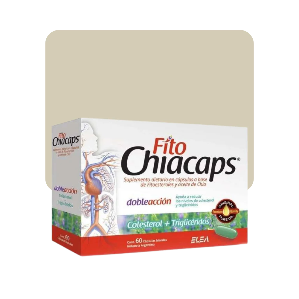 Cada cápsula blanda de Fito Chíacaps® contiene: 500 mg de Fitoesteroles de alta pureza y 500 mg de Aceite de Chía. El aceite de Chía (Salvia hispánica L), equivalente a 600 mg de Omega 3 (ALA: Ácido Alfa Linolénico C18:3).