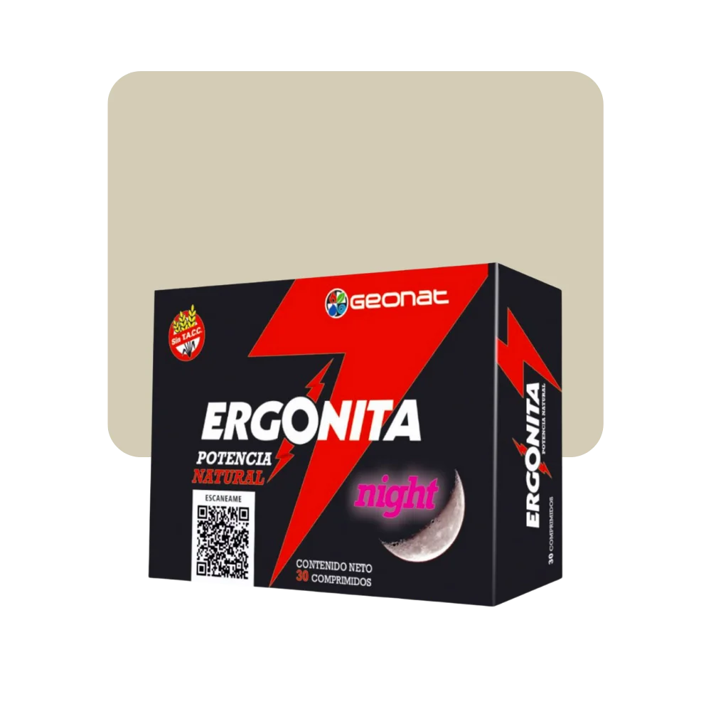 Ergonita Night es un energizante sexual masculino es un suplemento que combina ingredientes de culturas orientales, como Ajo Negro, Jengibre, Azafrán, Canela y Ginkgo Biloba, con componentes occidentales como Arginina, Vitaminas B3, B6, E y Zinc.