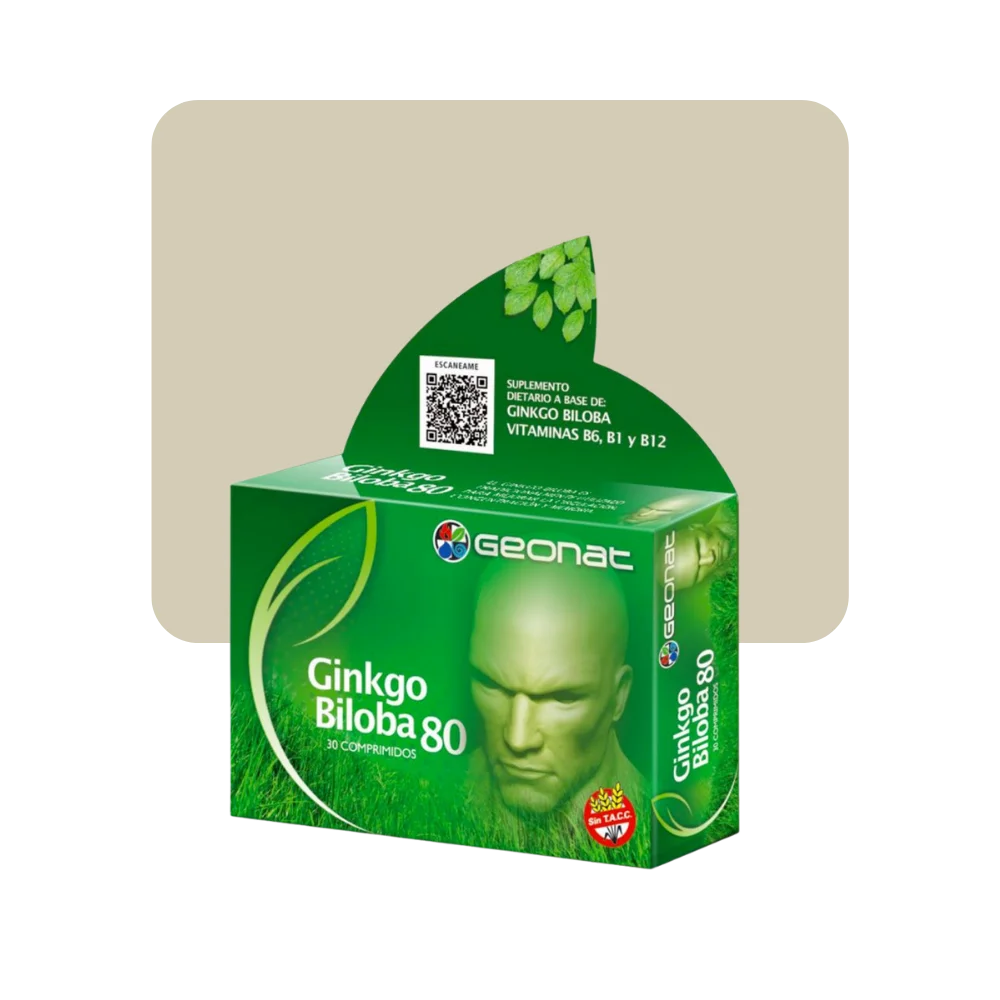 Cada comprimido contiene: Ginkgo Biloba(E.S)(80 mg), Vitaminas B6(2 mg, 154% IDR),Vitamina B12 (6 mcg,250% IDR) y Vitamina B1(1.5 mg, 125% IDR).