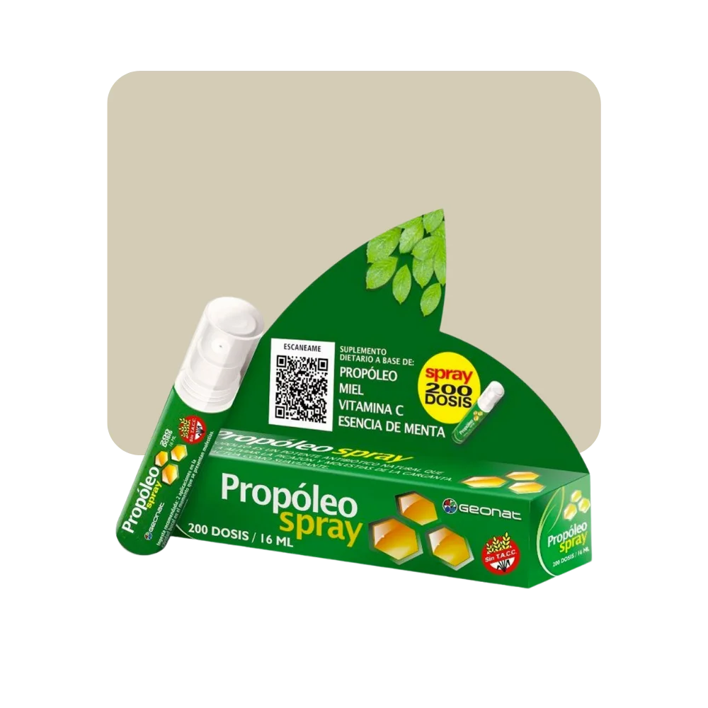 La combinación de propóleo y miel ofrece una sensación suave, protegiéndote de virus y bacterias ambientales. Elaborado sin calor para mantener intactos sus beneficios, su presentación en spray facilita su aplicación oral, proporcionando hasta 200 aplicaciones por envase.