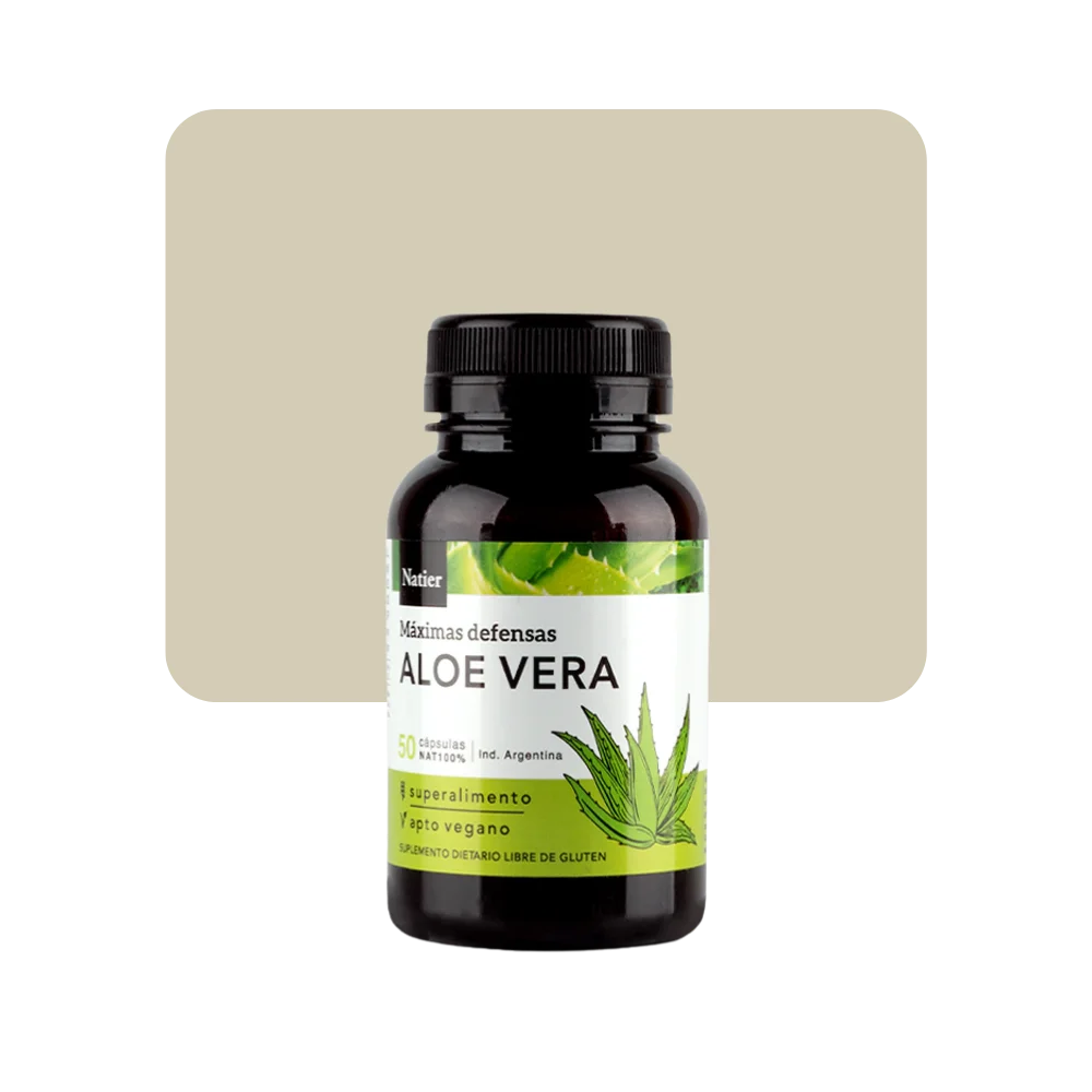 Presentación: 50 cápsulas de 60 mg de extracto seco de Aloe Vera.
