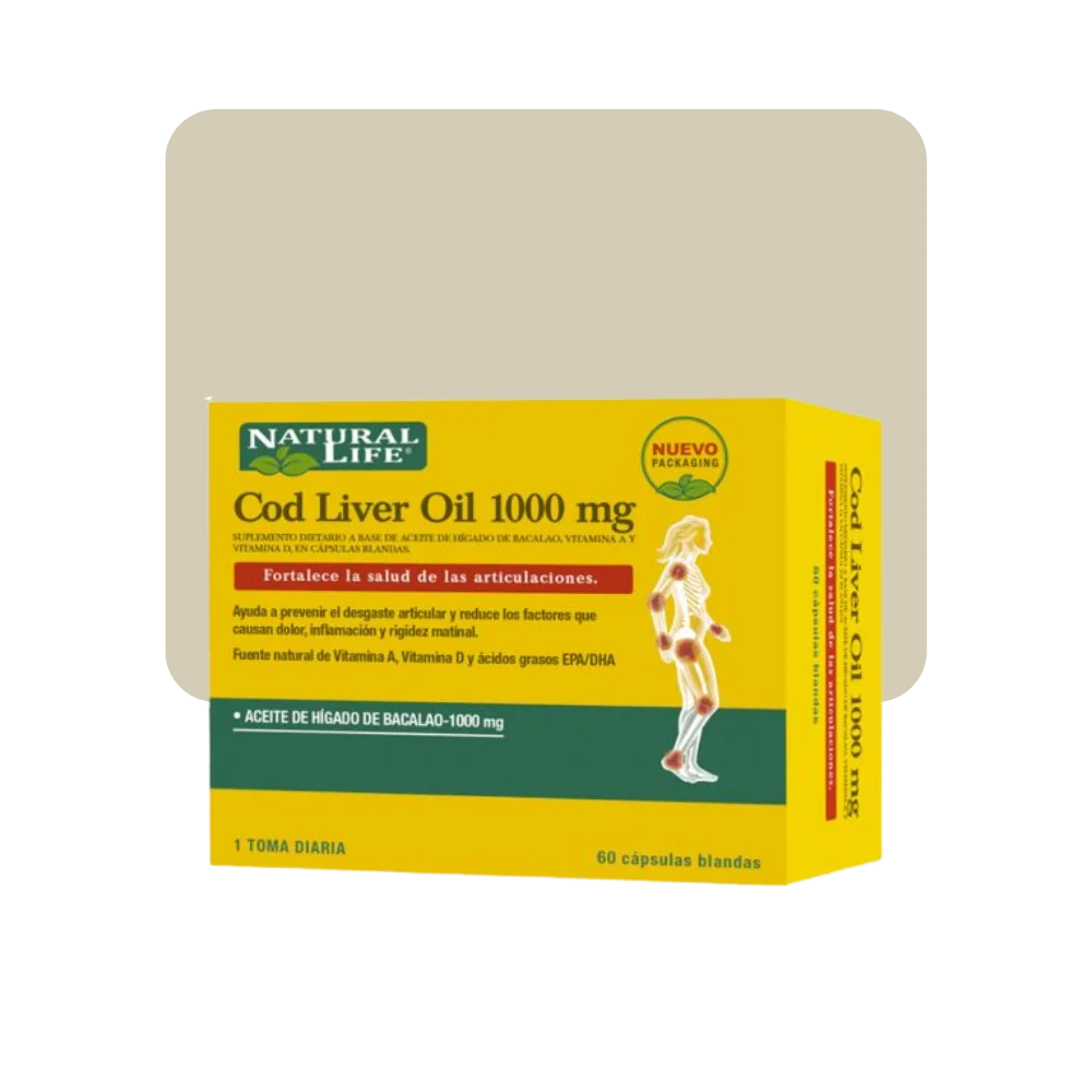 El Aceite de Hígado de Bacalao, con sus 1000mg, tiene una acción dual puede retardar la degeneración del cartílago y disminuir el dolor, la inflamación y la rigidez matutina.