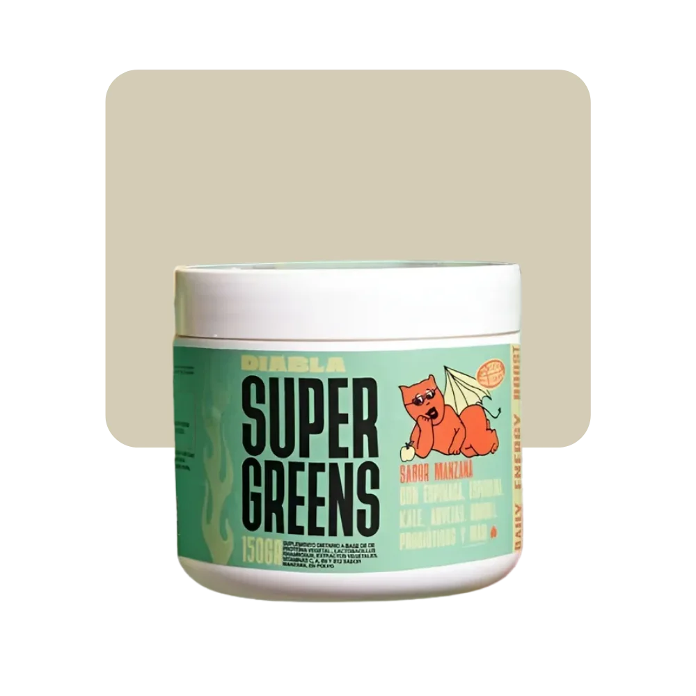 El Super Greens es un suplemento en polvo que ayuda a incrementar niveles de energía, mejora la digestión y apariencia de la piel, hidrata profundamente el cuerpo, es antiinflamatorio y fortalece al sistema inmune.