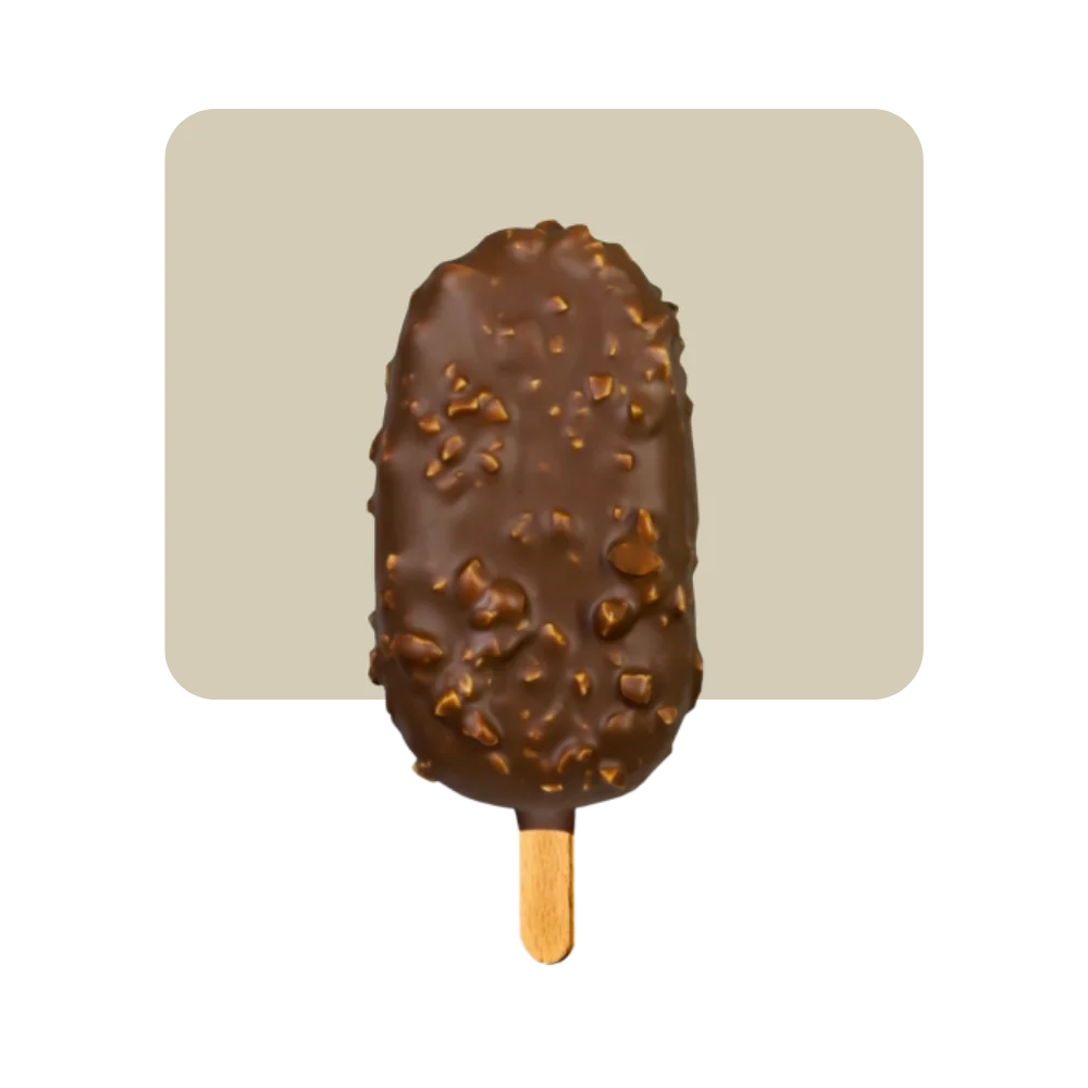 Paleta helada de maní cubierta de chocolate a la leche con maní.