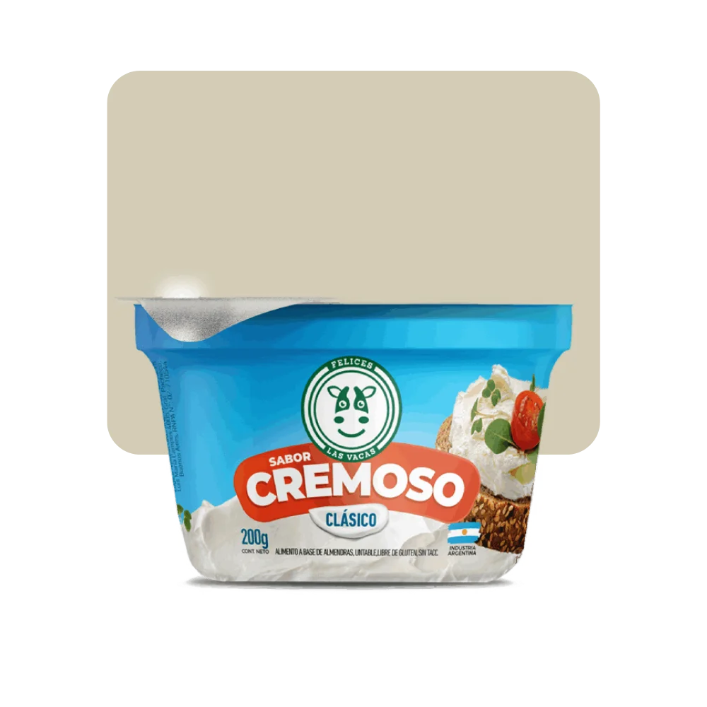 Ingredientes: Bebida de almendras (agua, almendras), aceite vegetal interesterificado, castañas de cajú, almidón, sal. EST: goma guar INS 412, ACREG: ácido cítrico INS 330, CONS: sorbato de potasio INS 202. CONTIENE ALMENDRAS Y CASTAÑAS DE CAJÚ.