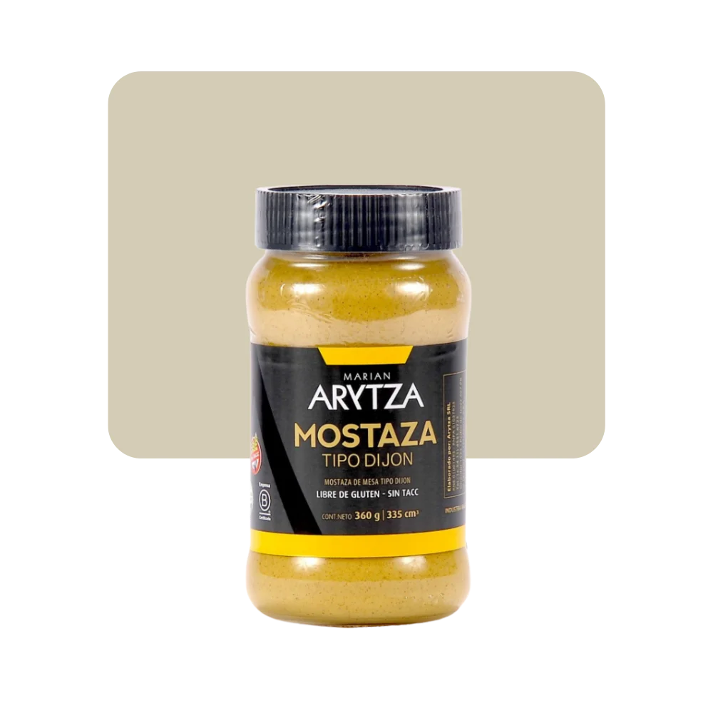 La mostaza dijon está elaborada con semillas de mostaza marrón, vinagre de alcohol y otros condimentos, esta mostaza tiene un aroma distintivo y un sabor complejo. Es versátil y se puede usar como aderezo para ensaladas, acompañamiento para carnes, condimento para sándwiches y adición a salsas y marinadas. Su textura suave y consistencia cremosa la hacen popular en la cocina gourmet y casera.