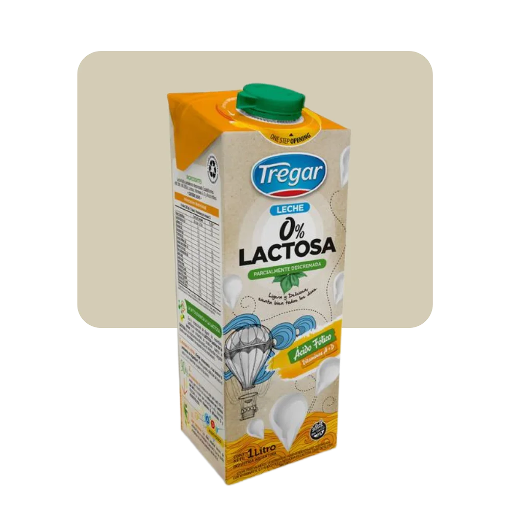 La Leche 0% Lactosa Tregar es una alternativa ideal para personas con intolerancia a la lactosa o quienes buscan una opción más liviana sin resignar sabor ni calidad nutricional.