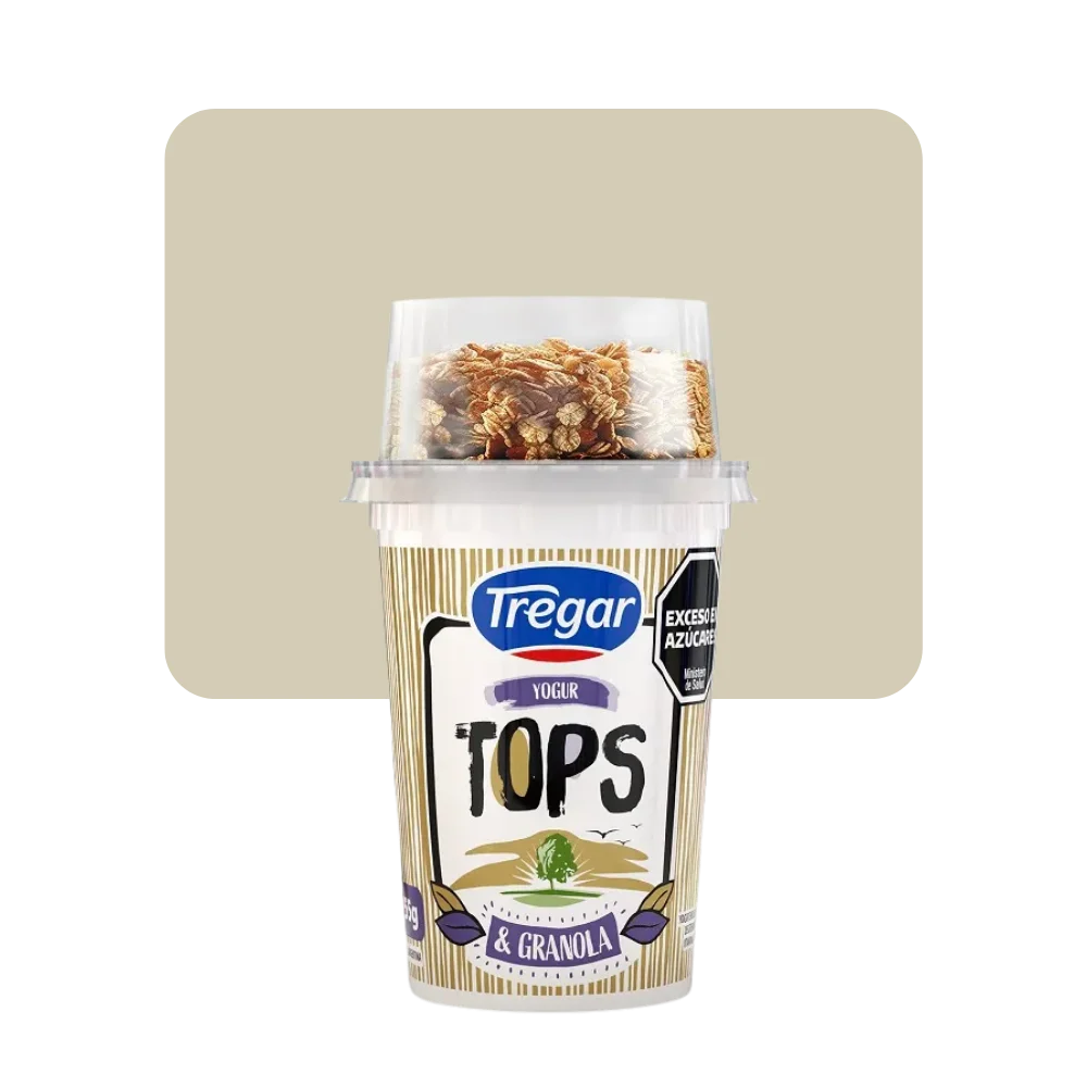 El Yogur Entero Tops Granola Tregar combina la cremosidad del yogur entero con el toque crocante de la granola, logrando un equilibrio ideal entre suavidad y textura.