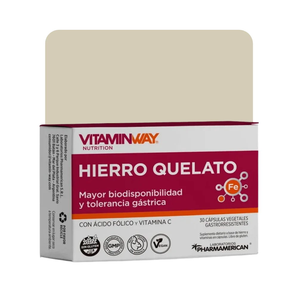 Suplemento dietario a base de hierro quelado, formulado para una alta absorción y mejor tolerancia digestiva. Ideal para acompañar la energía diaria y contribuir al equilibrio nutricional.