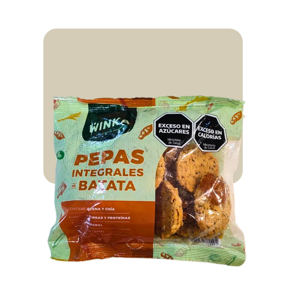Las Pepas Integrales de Batata Winka combinan una masa elaborada con harina integral y un clásico relleno de batata, logrando una textura suave con un centro dulce y delicado.